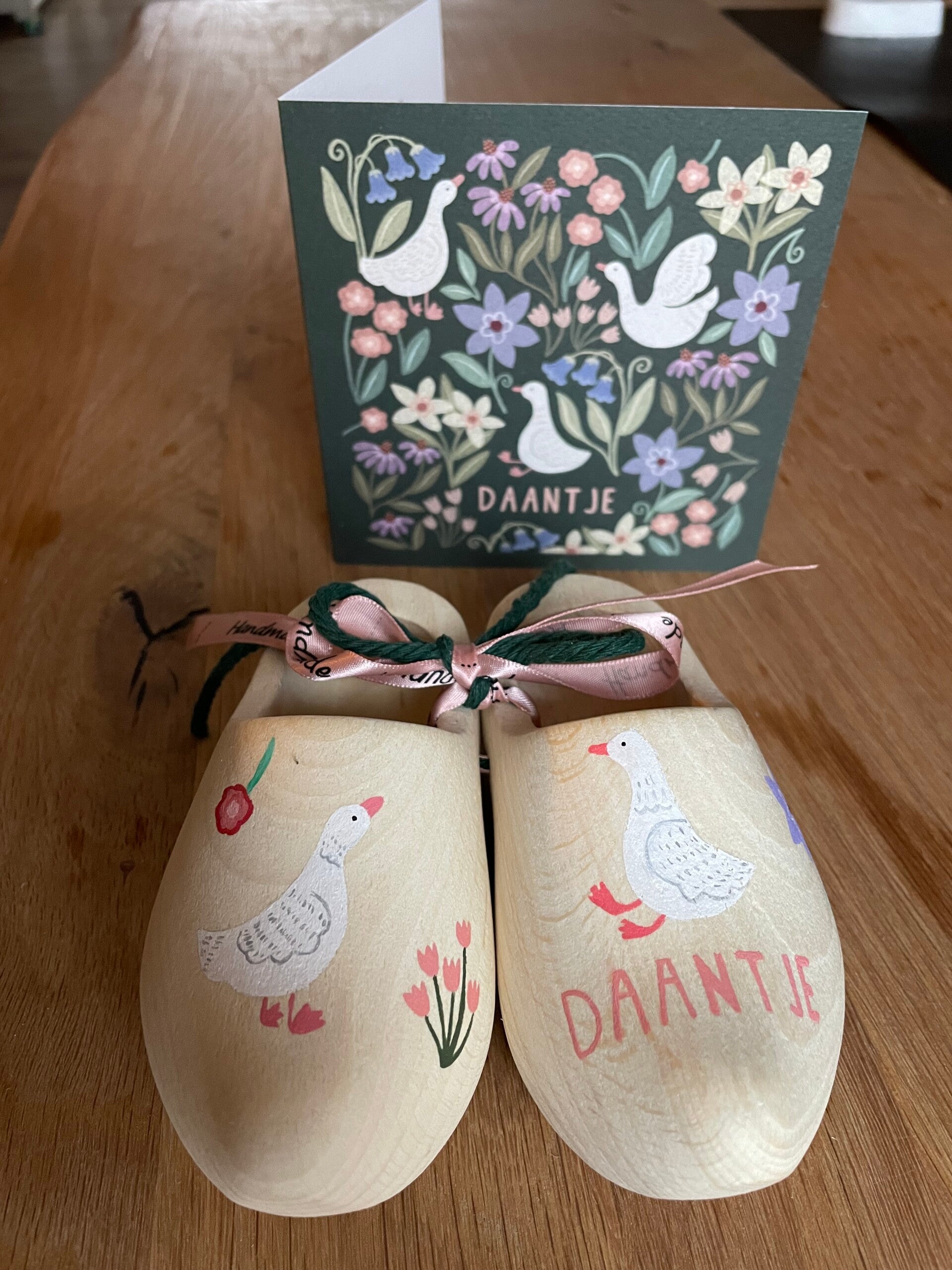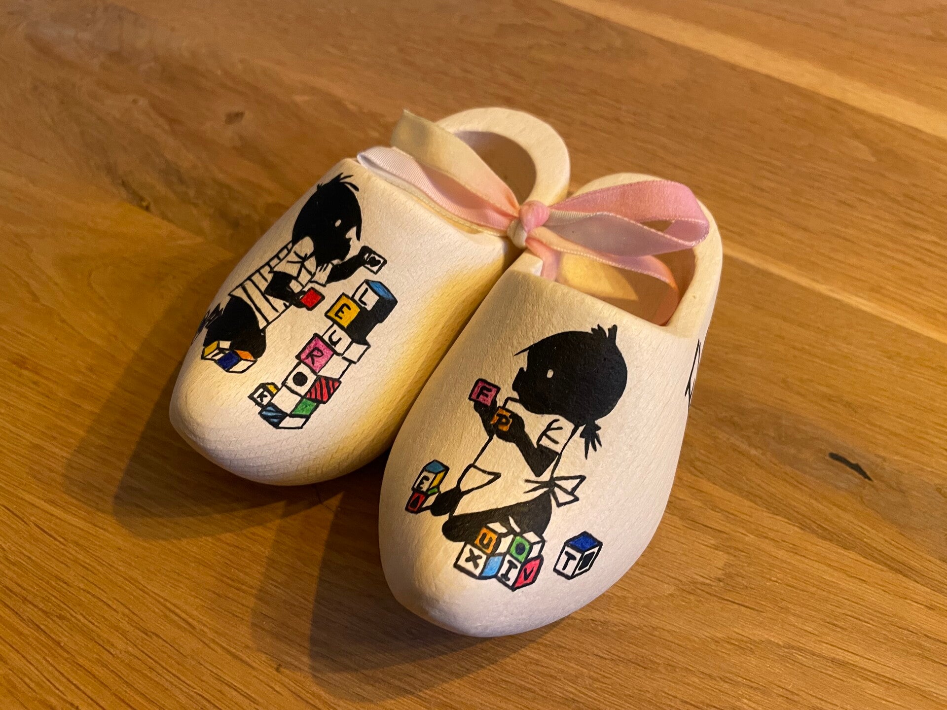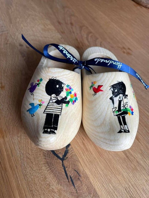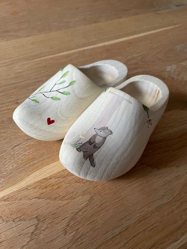 Een uniek geboortecadeau. Handgeschilderde klompjes, ze zijn circa 14 cm groot. Laat de klompjes samen stellen zoals je zelf zou willen. Bij het afronden van de bestelling kun je aangeven wat je erop wilt hebben, lukt het niet of wil je overleg stuur mij dan een berichtje.
